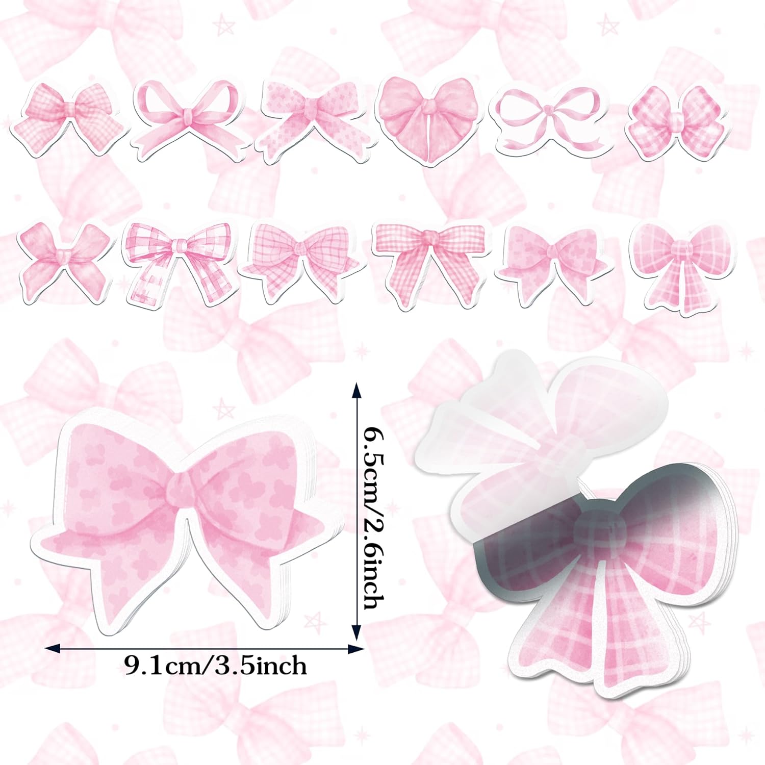 - 【PINK BOW DESIGN】These sticky notes are designed in different styles with a pink bow theme, mini and unique, adding fun and creativity to your workspace, whether it's at school or in the office. Also pink bow sticky notes can used for gifts, will more cute, perfectly match the festive atmosphere