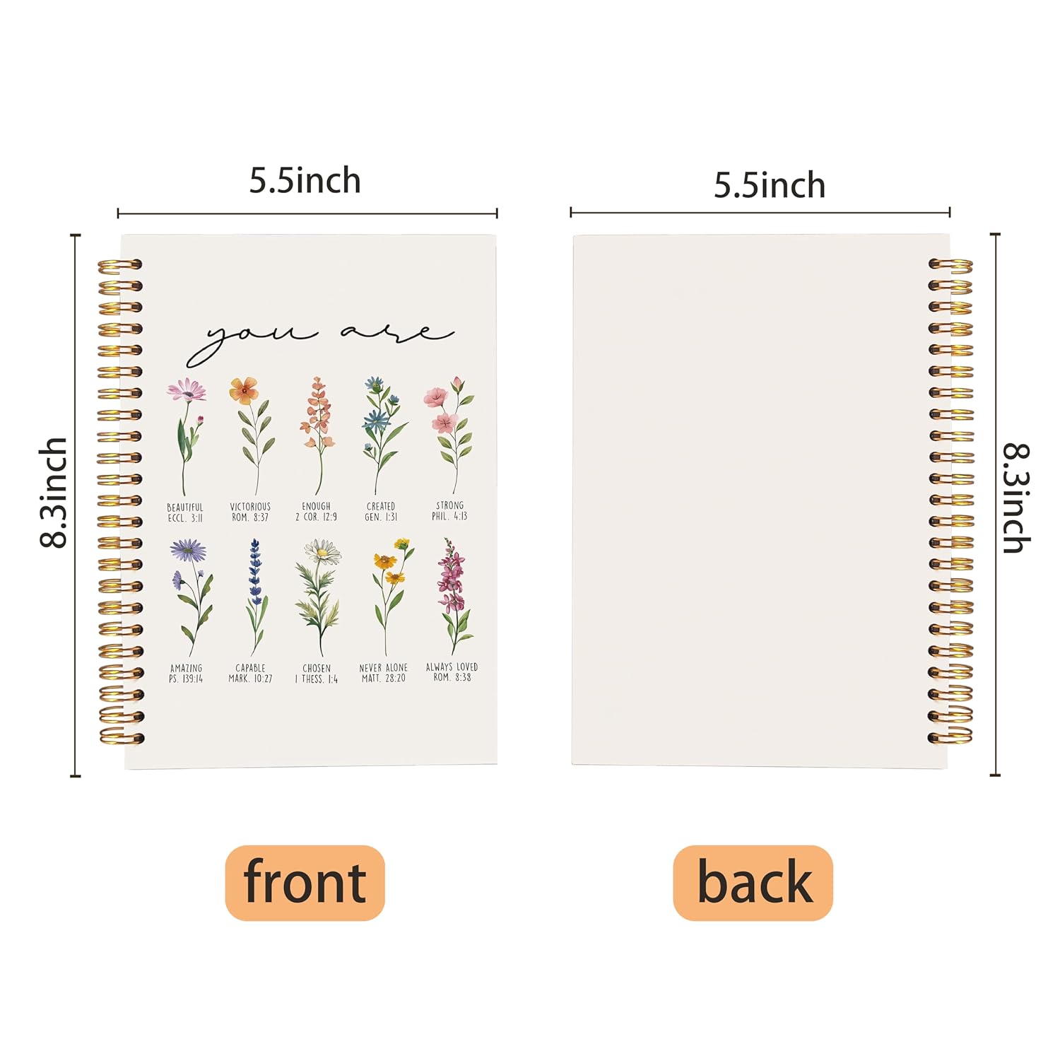 Flower Christian Spiral Notebook 5.5x8.3, You Are Bible Journaling Notebooks, Prayer Journal for Woman, Bible Verse Notebooks for Note Taking, Religious Scripture Journals for Writing